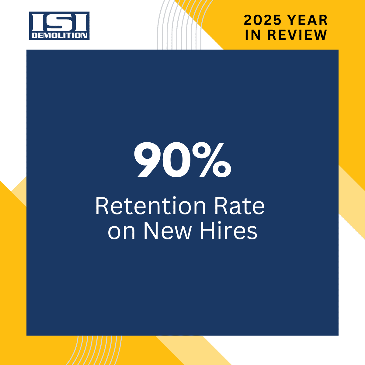 That consistency is supported by the people performing the work. In 2025, ISI Demolition maintained approximately 90% retention among new hires, reinforcing workforce stability and continuity across projects.